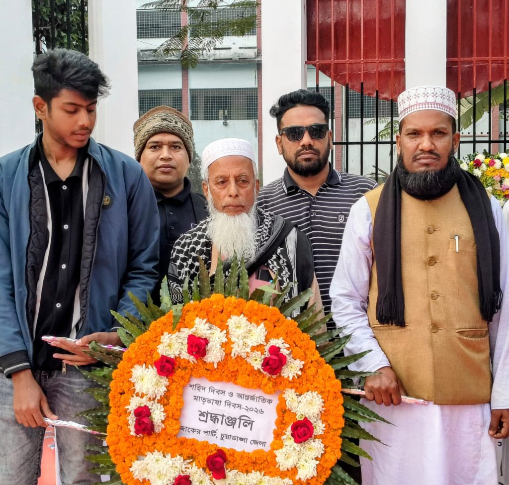 চুয়াডাঙ্গা জেলা জাকের পার্টির পক্ষ থেকে শহীদ মিনারে পুষ্পস্তবক অর্পণ