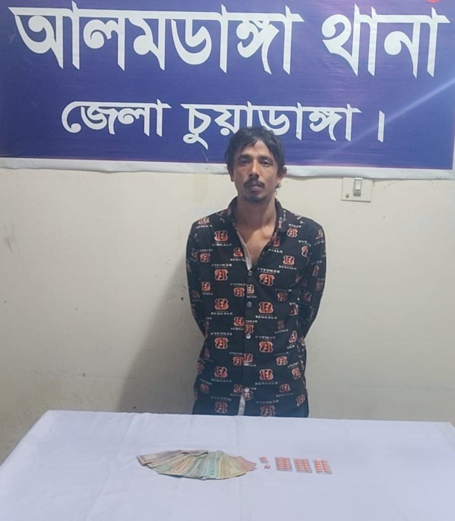 চুয়াডাঙ্গা জেলার সুযোগ্য পুলিশ সুপার মোহাম্মদ মনিরুল ইসলামের সার্বিক দিকনির্দেশনায় জেলা পুলিশের সকল ইউনিটে একযোগে মাদক ও চোরাচালান বিরোধী অভিযান পরিচালিত হচ্ছে। তারই ধারাবাহিকতায় আলমডাঙ্গা থানার এসআই(নিঃ) মোঃ হাবিবুর রহমান সংগীয় অফিসার ফোর্সসহ থানা এলাকায় বিশেষ অভিযান পরিচালনাকালে ২৬ ফেব্রুয়ারী ২০২৬ তারিখ সময় ২ টা ৪৫ মিনিটের সময় আলমডাঙ্গা থানাধীন হারদী ইউনিয়নের ওসমানপুর গ্রামস্থ জনৈক মোঃ বাবলু এর বসত বাড়ীর সামনে পাঁকা রাস্তার উপর থেকে আসামী ১। মোঃ তরিকুল ইসলাম(৩২), পিতা- মোঃ হবিবার রহমান, সাং- ওসমানপুর হঠাৎপাড়া, থানা- আলমডাঙ্গা, জেলা- চুয়াডাঙ্গাকে গ্রেফতার করে এসময় তার কাছ থেকে ৩৩(তেত্রিশ) পিস মাদকদ্রব্য Tapentadol Tablets এবং মাদক বিক্রয়ের নগদ ৮ হাজার ৯০ টাকা উদ্ধার করেন।